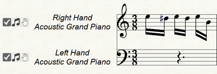 Performing Hands Now Displayed in Step by Step Mode | Performing Hands can also be shown in Step by Step Mode when finger numbers have been created for the score. This can help with studying hand positions. |